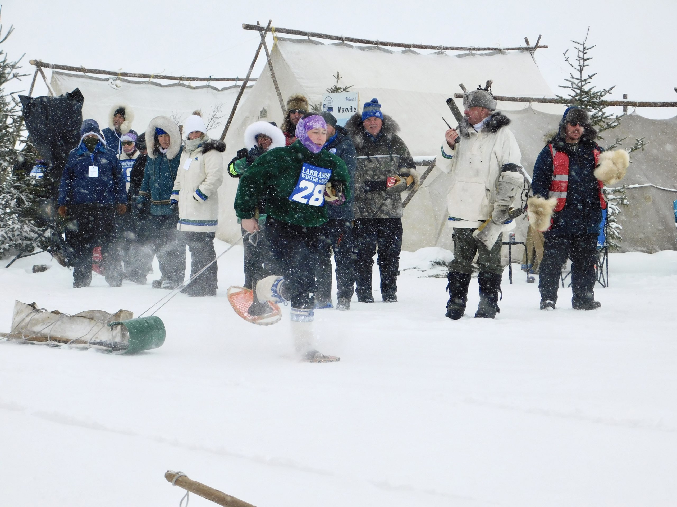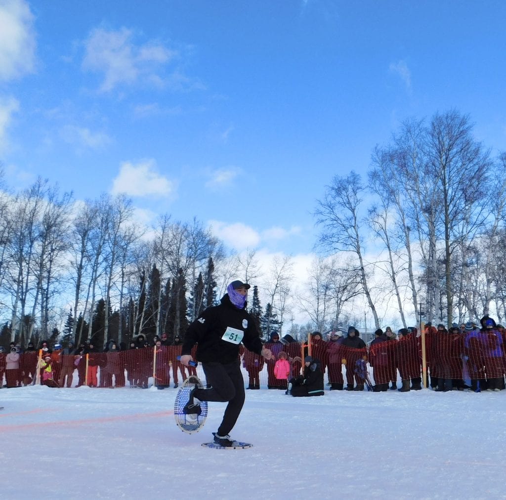 The E.J. Broomfield Memorial Labrathon is one of the main events that athletes and spectators look forward to. The race tests athletes’ ability to live like trappers once did, as they race in snowshoes while pulling a toboggan. Along the course, they must light a fire to boil a kettle, shoot five targets, set a trap and saw a log of wood and chisel a hole through the ice, before racing to the finish line with their toboggan full of tools.