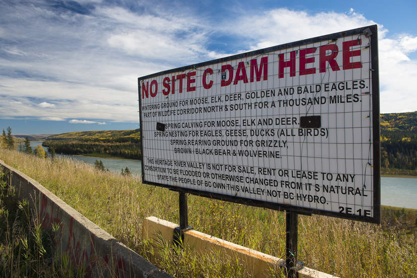 Image: A sign opposing the Site C dam in the Peace River valley. Photo: Garth Lenz | DeSmog Canada