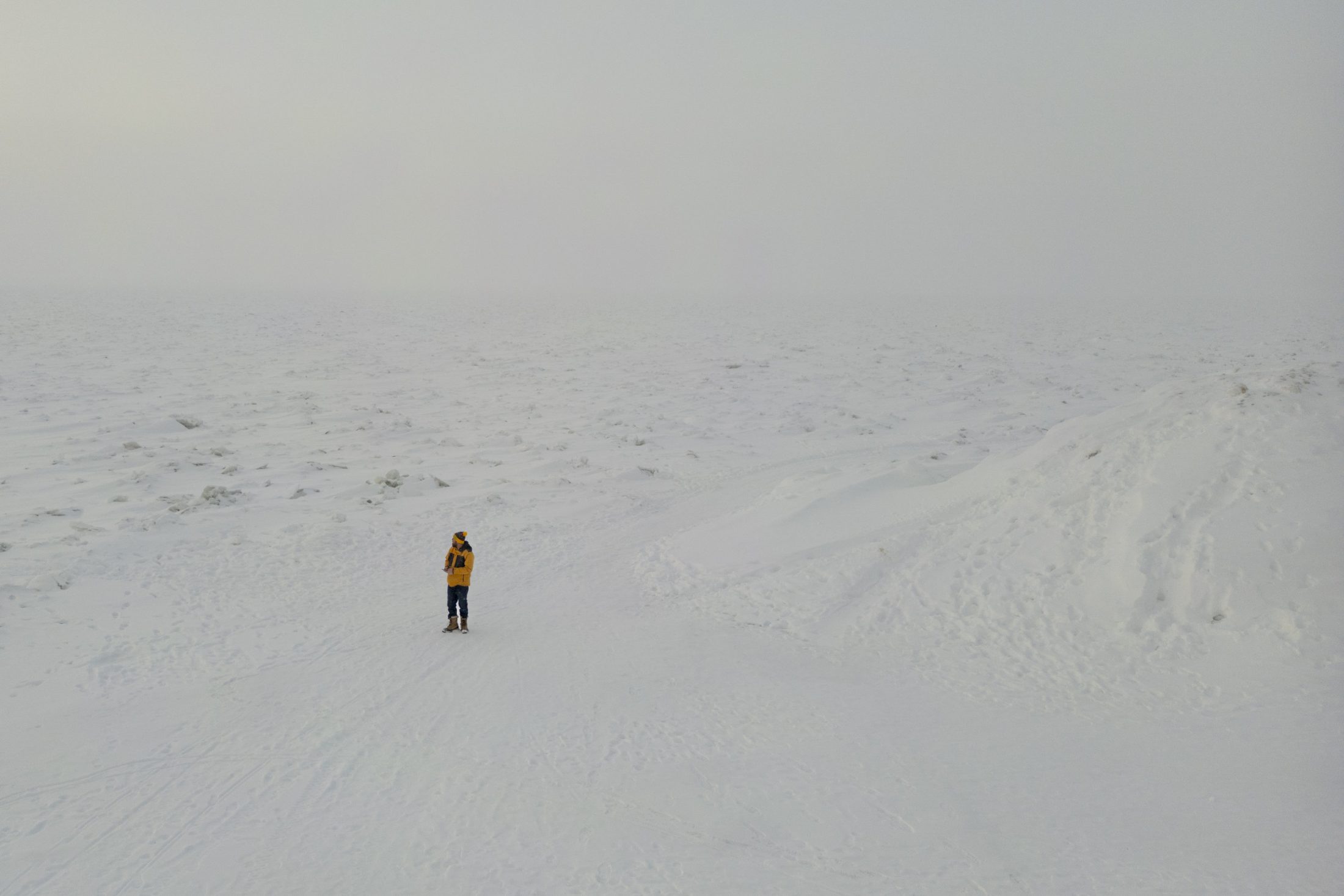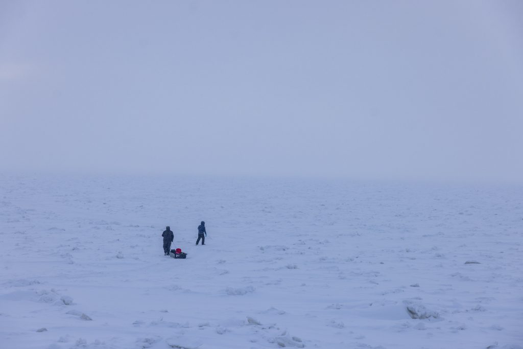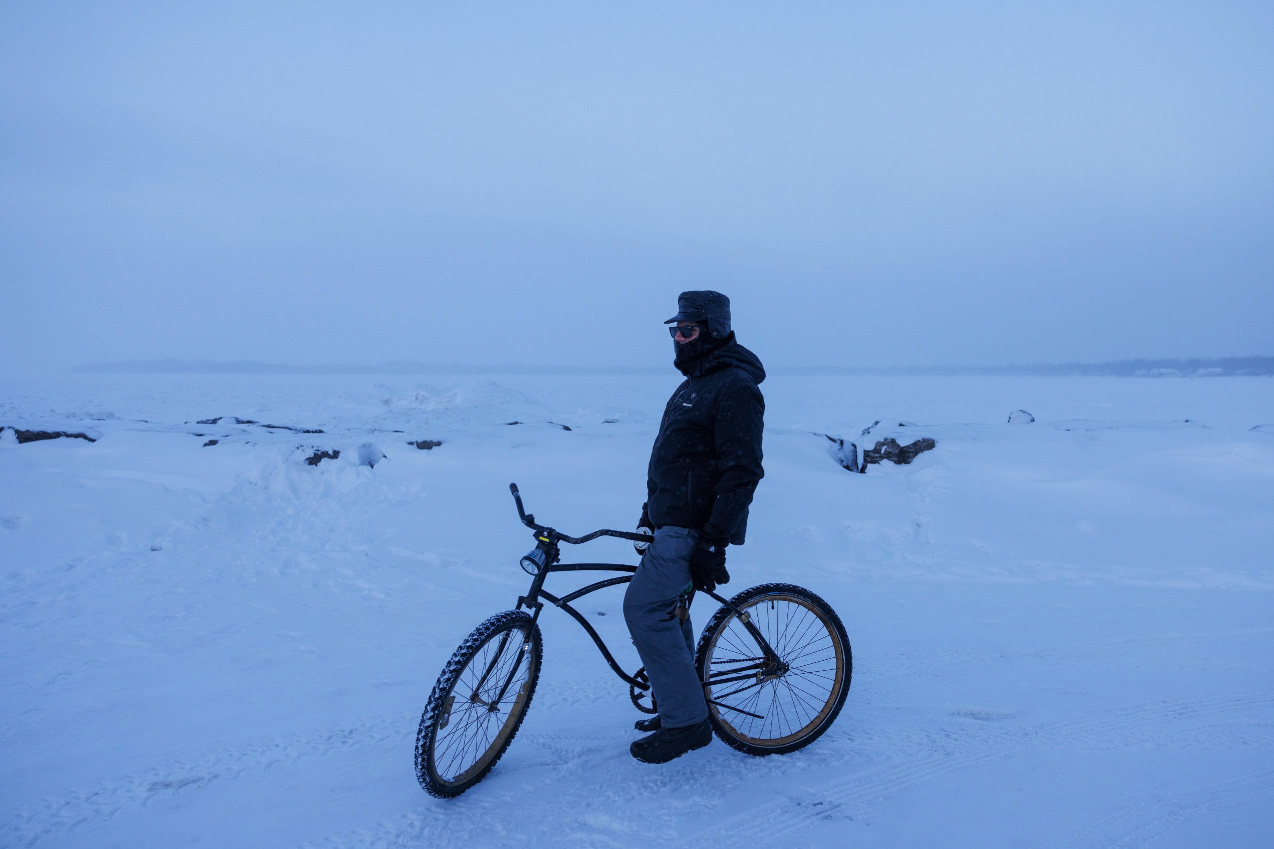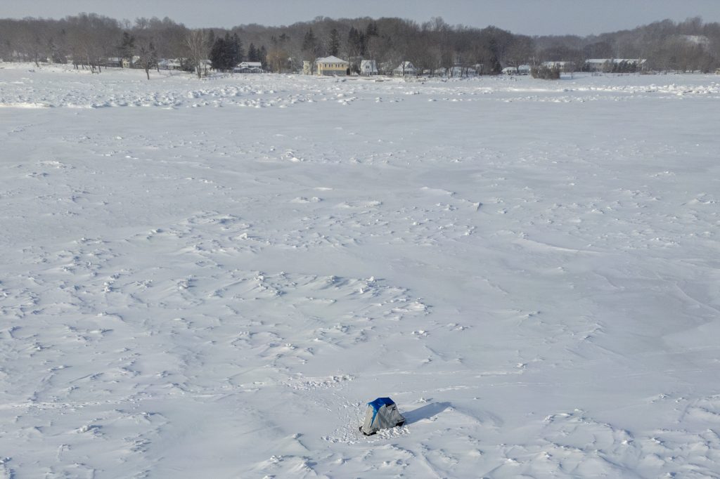 Among them was photographer Carlos Osorio, who captured the lake and the people who set out across it — on foot, studded-tire bicycle or all-terrain vehicle. Wind had sculpted blowing snow into rippling waves, as if the water, on a blustery summer day, suddenly stood still.