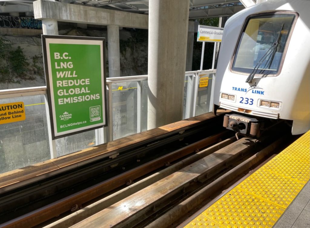 An advertisement in downtown Ottawa reads, "As long as the world needs oil and natural gas, it should be Canadian."