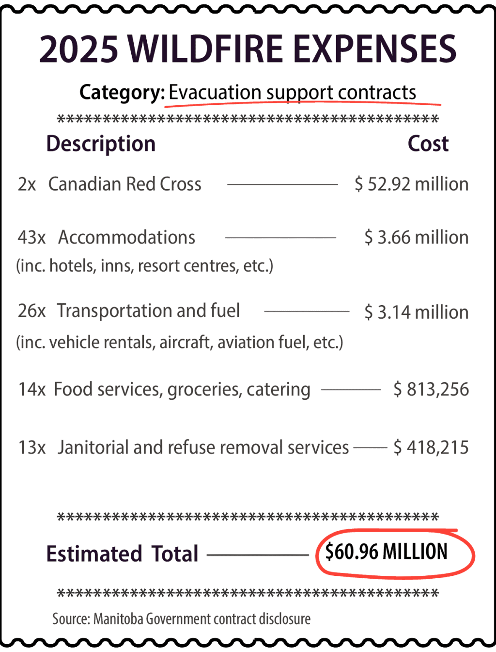 - The Manitoba government alone spent seven times its projected budget on emergency response — more than the operating budgets of two of its departments combined.