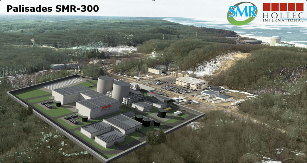 And that’s not the only game-changing nuclear development occurring at the Palisades site along the Lake Michigan shoreline in the state’s southwest corner. Holtec is busy seeking permission from the Nuclear Regulatory Commission, the United States’ licensing and safety agency, to start construction for a new 680-megawatt nuclear generating station next door to the old reactor. The company wants to power the new plant with not one but two 340-megawatt advanced small modular reactors.