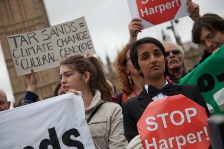 As promised, multiple protests against the tar sands greeted Prime Minister Stephen Harper Thursday in...